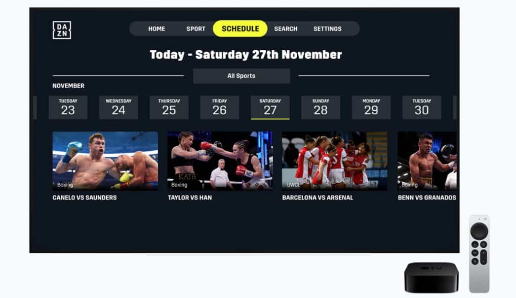 Quanto à Apple TV, a melhor aplicação foi … a DAZN: o único serviço a fazer o stream de grandes eventos desportivos ao vivo ou quando o utilizador quiser ver (Também está disponível para iPad e iPhone).
